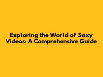 Exploring The World Of Saxy Videos: A Comprehensive Guide