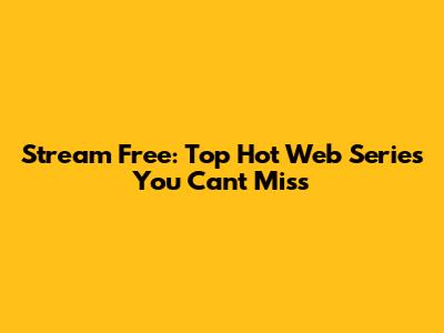 Stream Free: Top Hot Web Series You Can't Miss